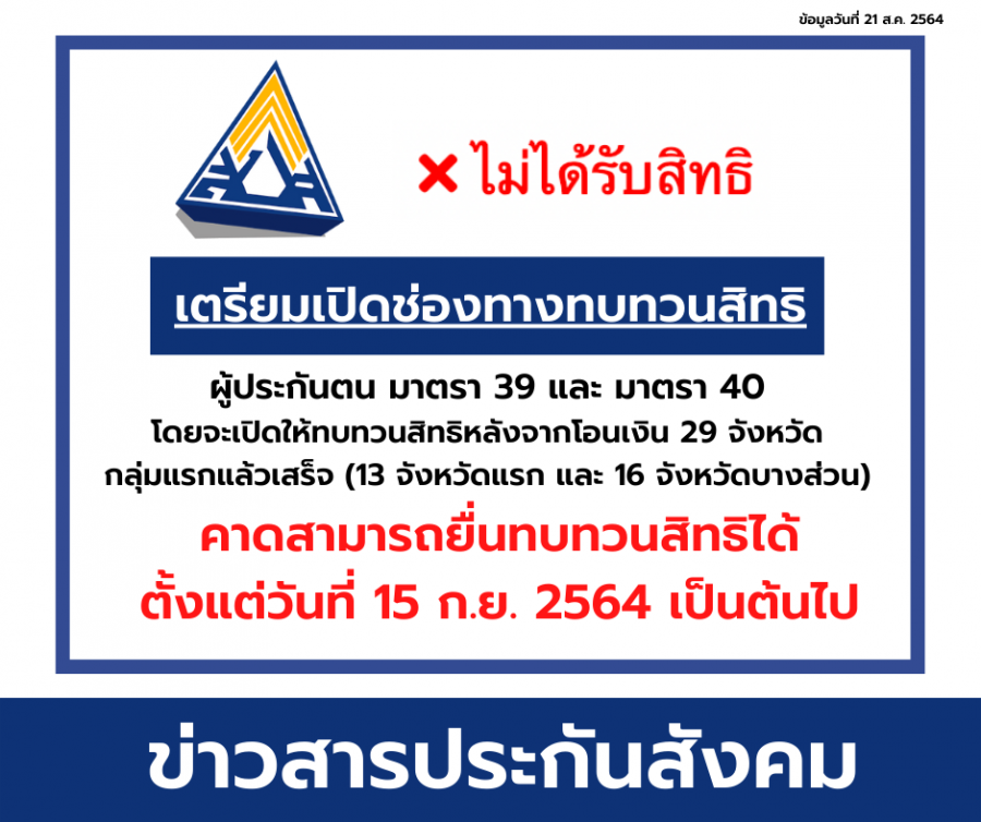 ตรวจสอบสถานะสทธโครงการเยยวยาผประกนตนมาตรา 40 เลขประจำตวประชาชน. 64 ตรวจสอบสทธ wwwssogoth เงนเยยวยา. แบบฟอรมขอทบทวนสทธผประกนตนมาตรา 39-40 ตรวจสอบการนดหมายฉดวคซน Covid-19 เขมท 2 ระหวางวนท 16 สงหาคม - 10 กนยายน 2564.